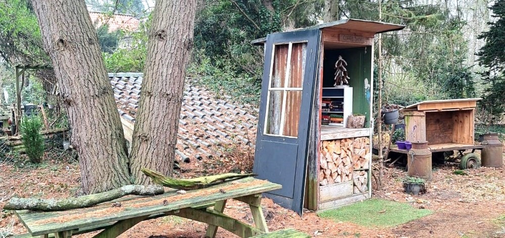 We hebben geen echte lunchplek gevonden. De 'Coffeeshop', waar het met een zonnetje aangenaam verpozen is, is gesloten. Wel kunnen we aldaar even een boterhammetje nuttigen, 'al staande' of op je meegebrachte matje op een bankje.